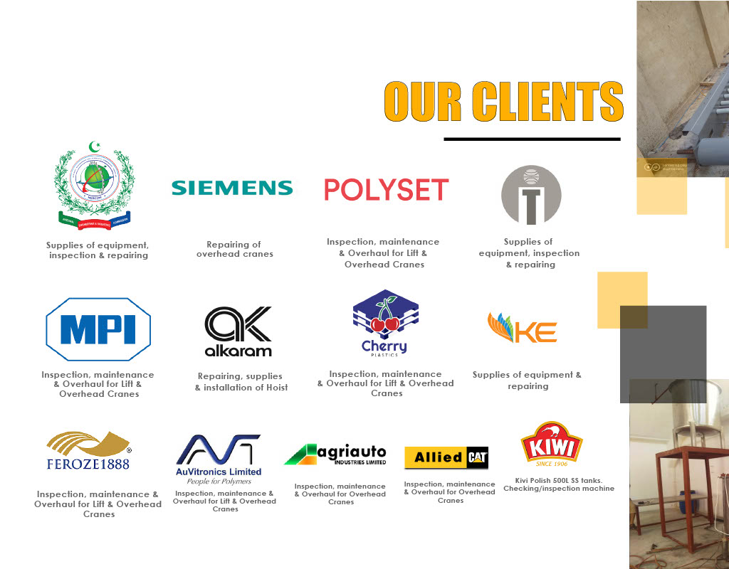 We proudly disclose the names of our satisfied customers, both within and outside the industrial areas of Karachi. Committed to excellence, we are always ready to serve our clients by resolving issues within our domain and expertise. Additionally, we offer 24/7 maintenance services to ensure uninterrupted operations and reliable support.